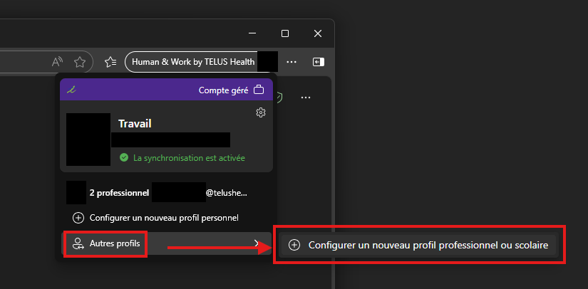 If you use multiple Microsoft accounts on the same device, such as your Human & Work account and a TELUS Health account, a single browser can mix sessions.