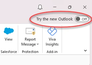 Dans Outlook Desktop, activez la bascule « Essayer le nouvel Outlook » (généralement en haut à droite) pour lancer la nouvelle interface.