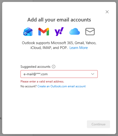 Ajoutez votre compte dans cette nouvelle version d'Outlook.