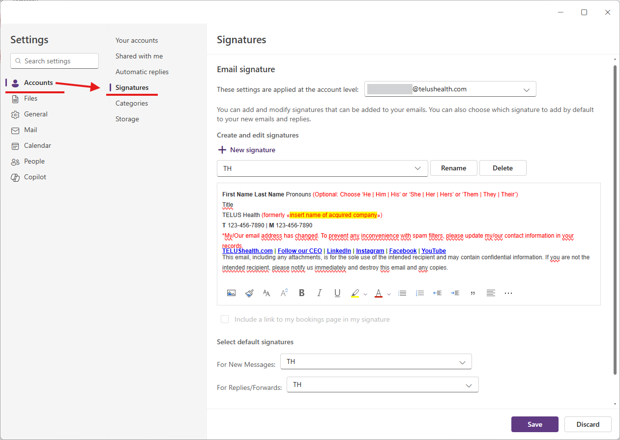 Ajoutez et paramétrez votre nouvelle signature professionnelle pour le compte TELUS Health.
