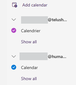 - Vérifiez l'affichage de vos deux calendriers dans Outlook :