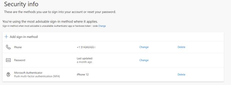 vous avez ajouté votre numéro de téléphone professionnel en authentification secondaire
